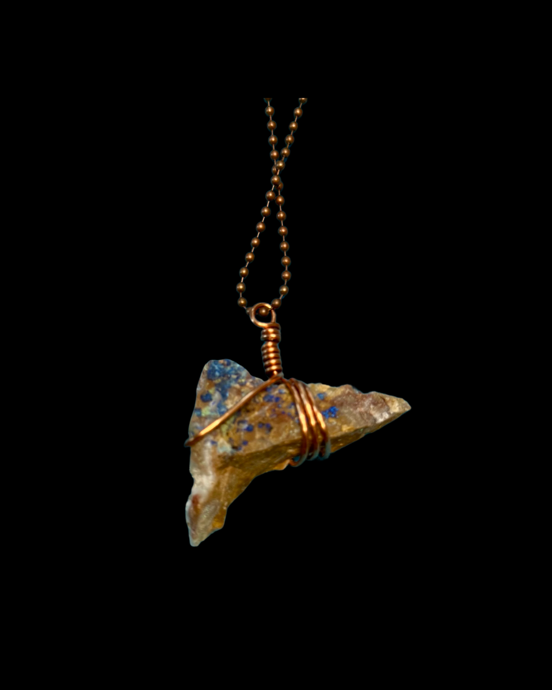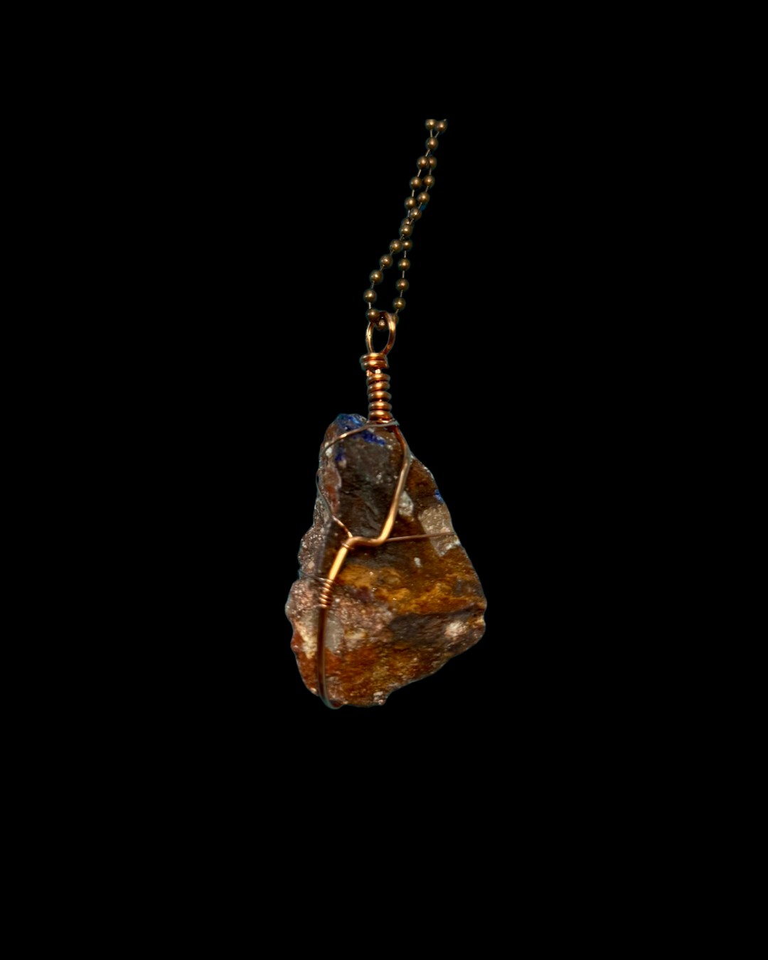 Azurite and malachite converge in this striking pendant, showcasing nature's most captivating blue-green palette. Azurite's deep celestial blue pairs beautifully with malachite's distinctive banded patterns, creating a visually dynamic piece. Both minerals have been valued throughout history for their aesthetic appeal and metaphysical properties. This pendant makes an excellent statement accessory for crystal enthusiasts and collectors who appreciate geological artistry and natural color variation.